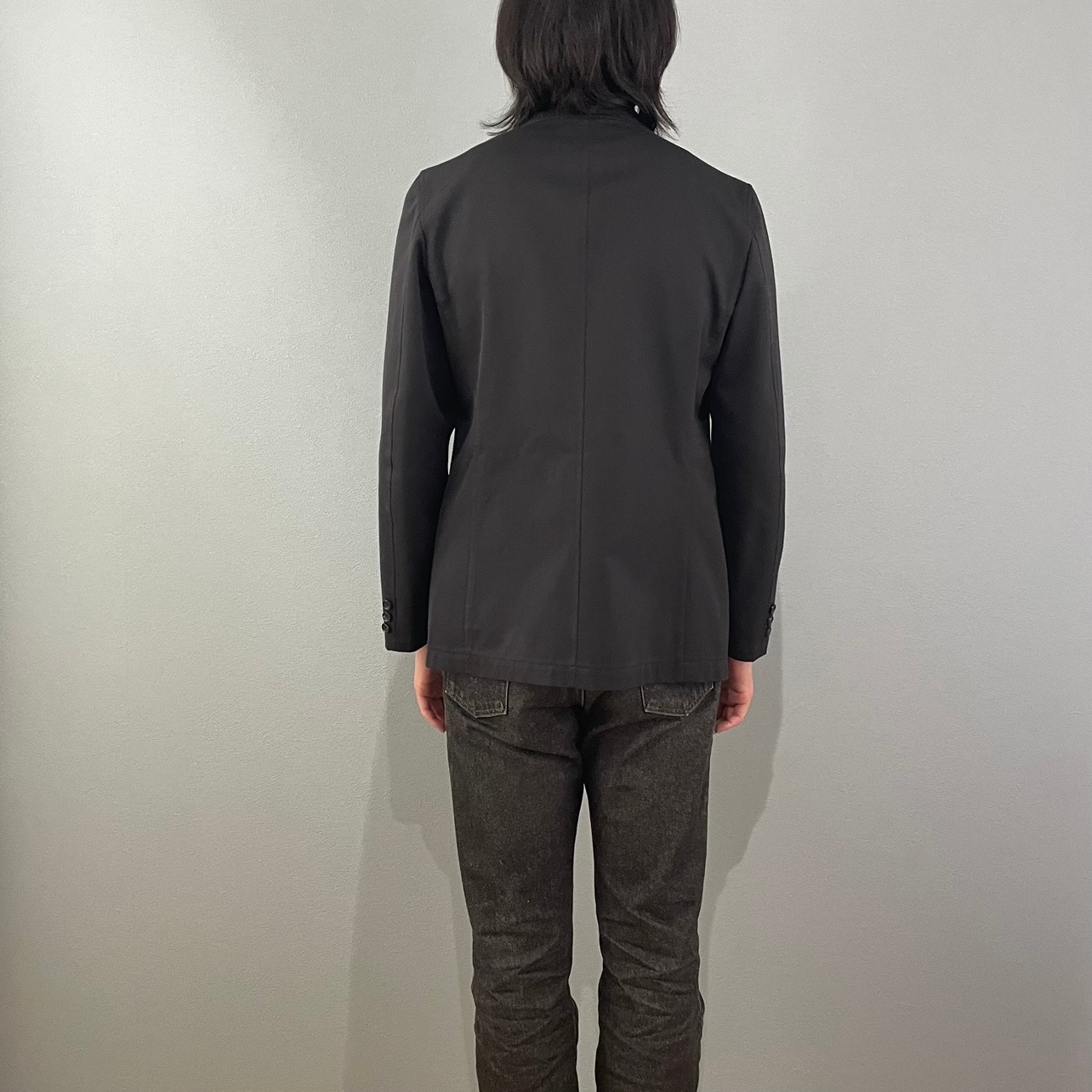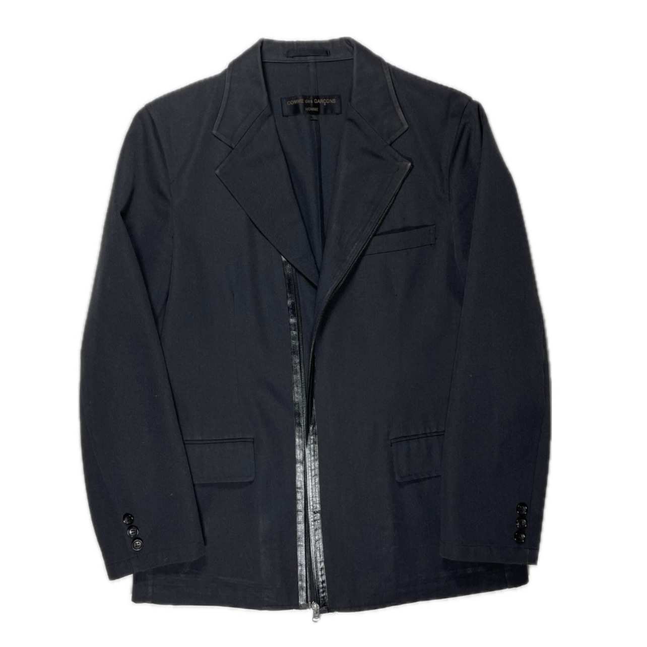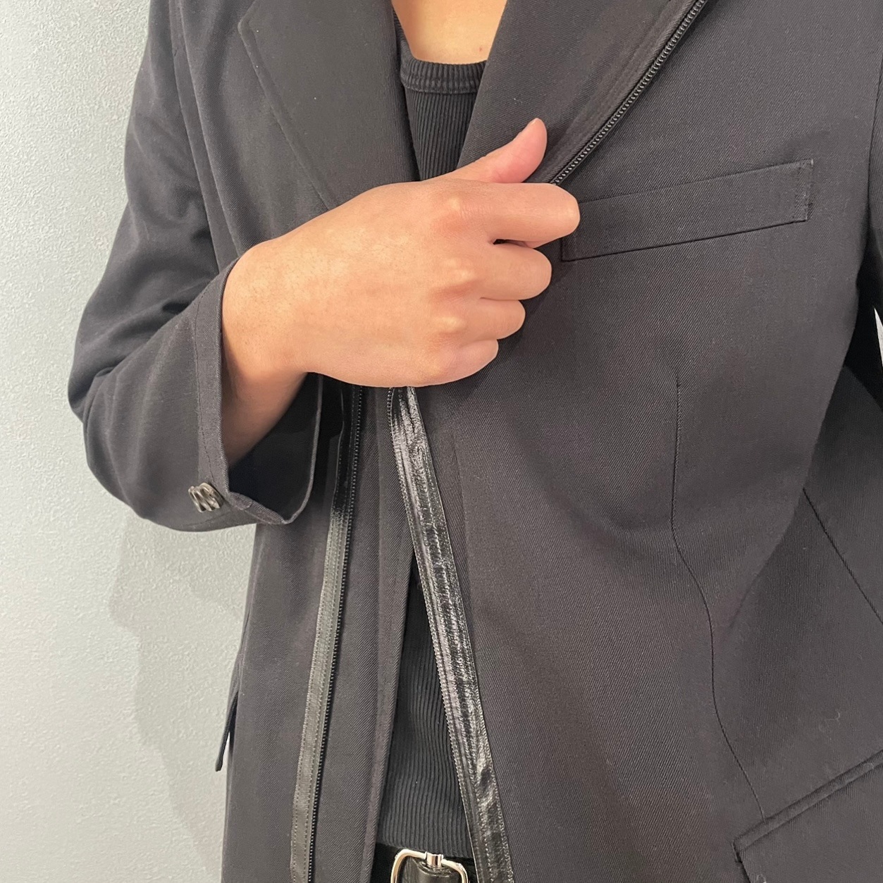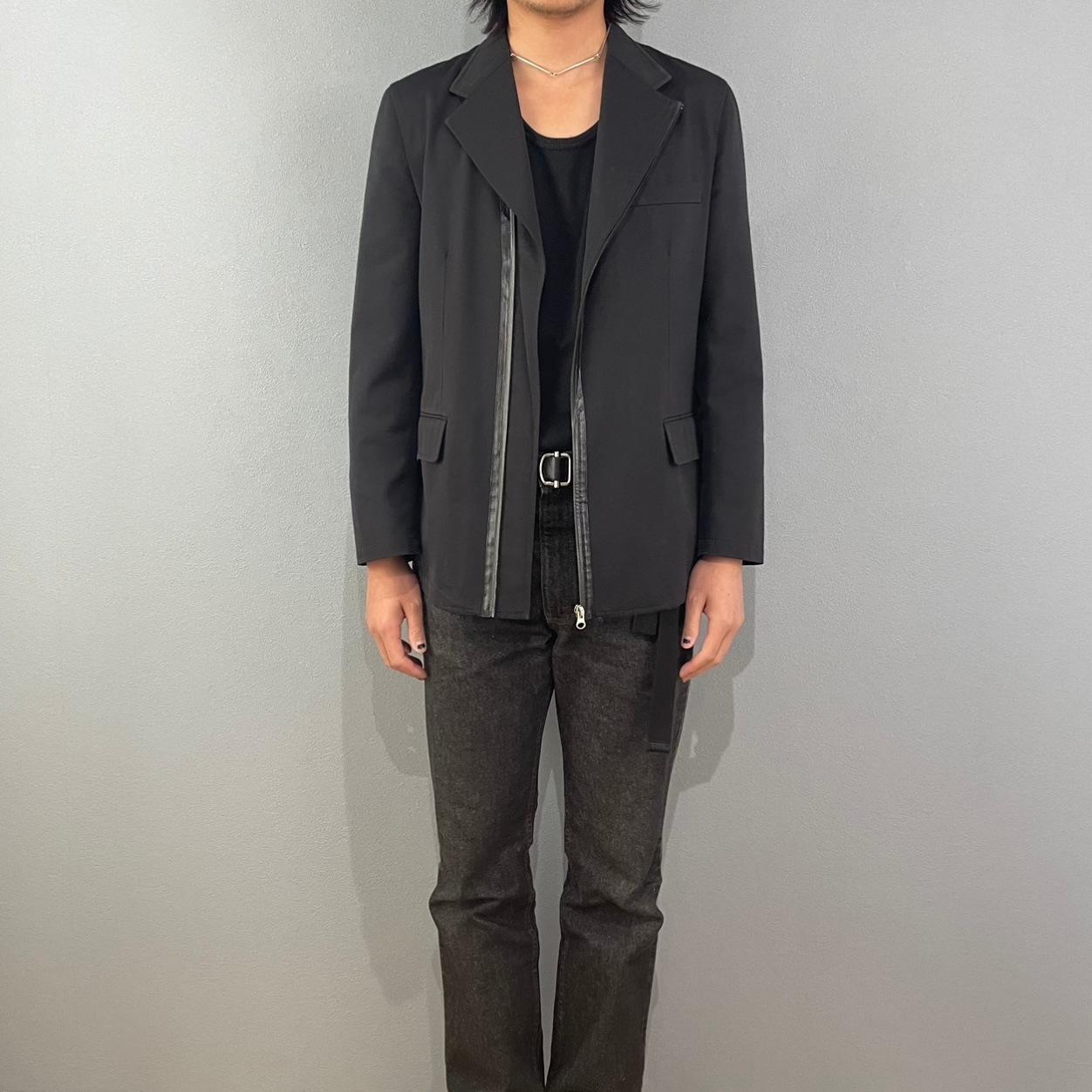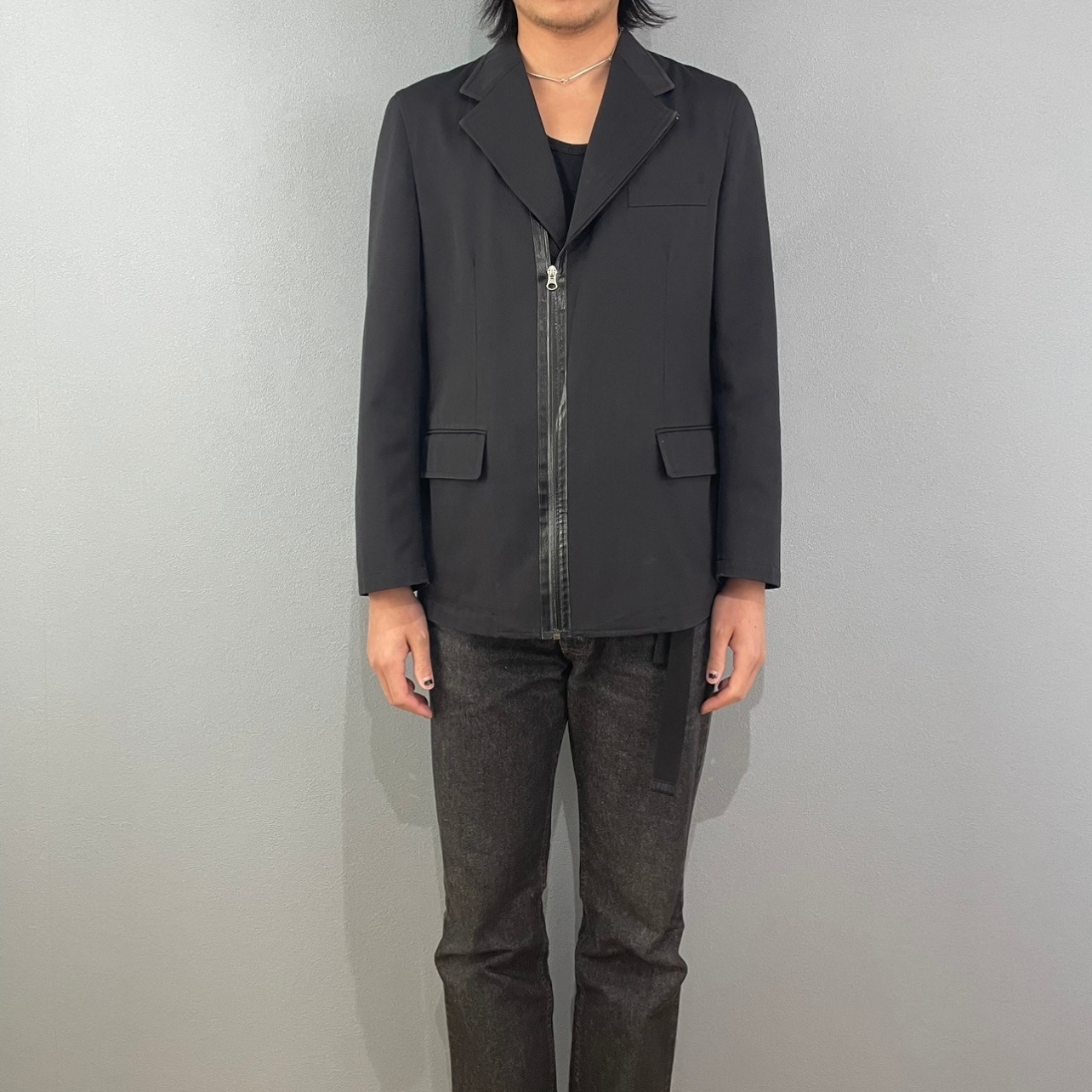 テーラードとライダースをドッキングしたようなデザインのCOMME des GARCONSのジャケット。止水ジップなどギャルソンらしいエッセンスに溢れています。